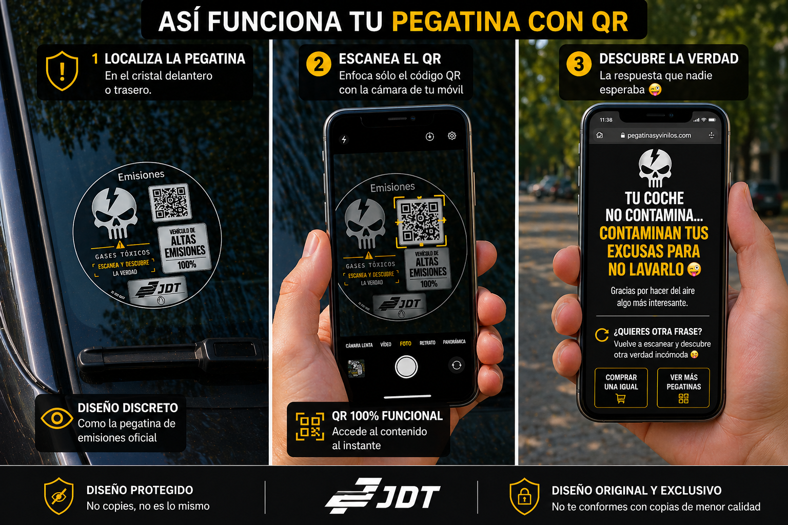 Es una pegatina de emisiones con QR que convierte tu coche en algo interactivo.