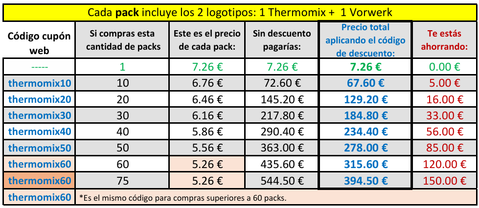 1 logotipo de Thermomix + 1 logotipo de Vorwerk (incluido en el precio).