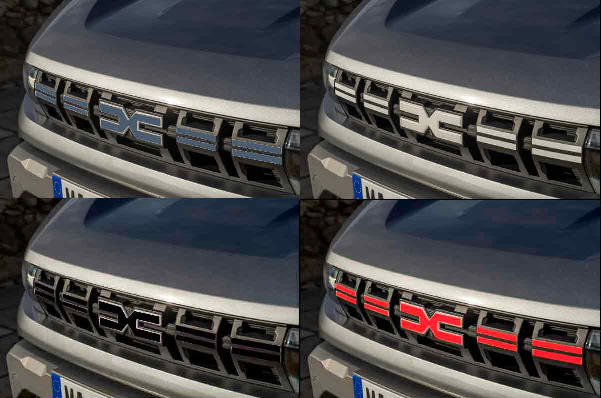 Pegatinas adhesivas recortadas para el logo y líneas frontales del Dacia Duster 2024–2025 o para las letras traseras de modelos Spring, Sandero, Stepway, Jogger, Duster, Bigster (ver fotos de medidas)